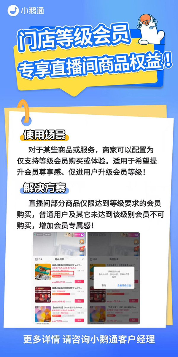 「门店等级会员」专享直播间商品权益!