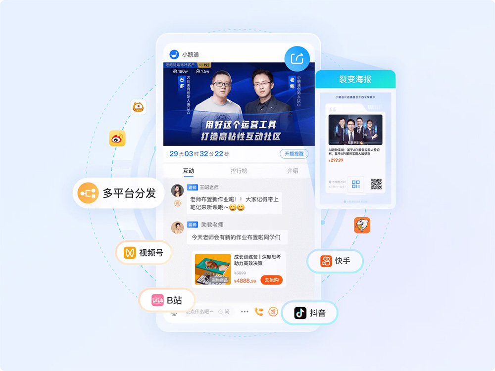一键分享成员加入直播,直观展现直播观众观看数据,提高管理效率